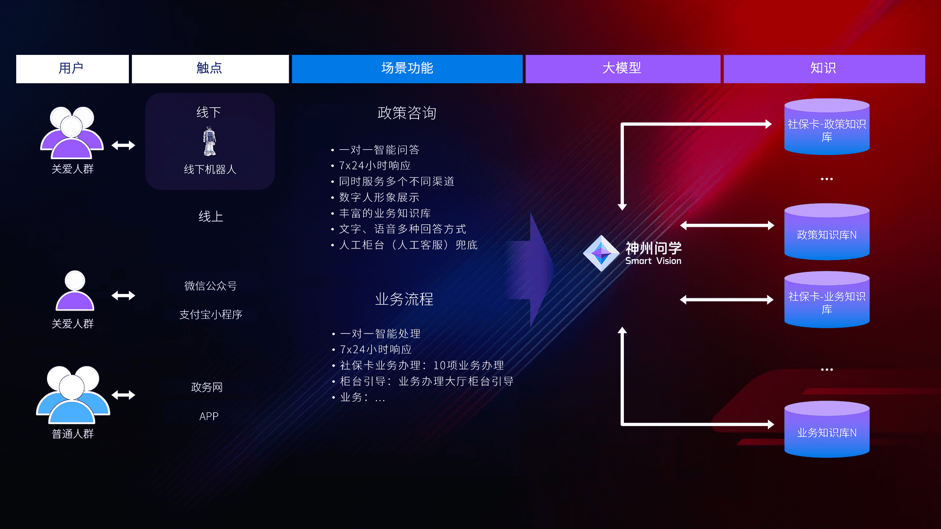 • 线上线下全覆盖:线上提供微信公众号、、支付宝小程序、、、政务网、、、、app多种渠道,,,与线下机器人形成完整服务体系。。。。